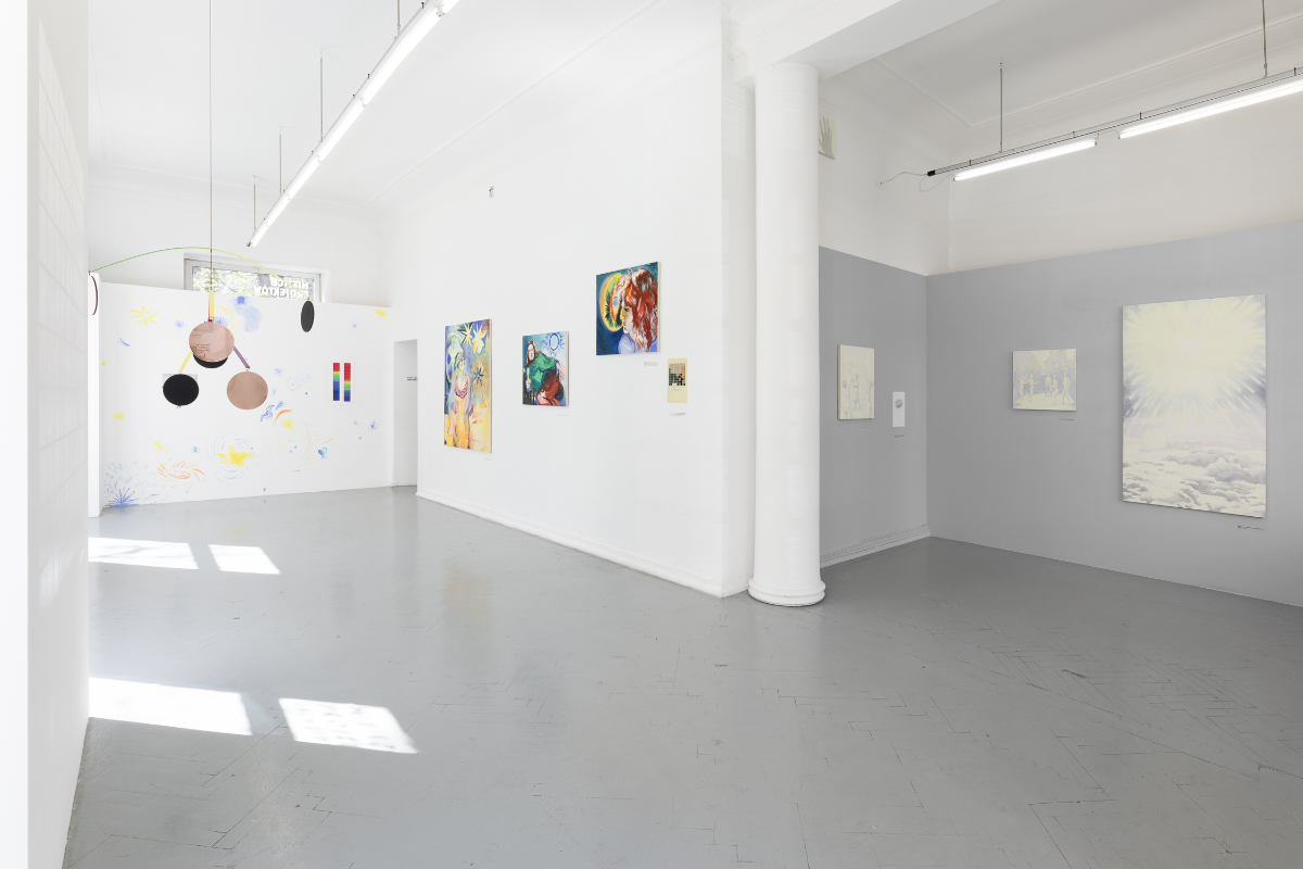 Ekspozycja została zaaranżowana jako podróż między dwoma światami: zewnętrznym (przestrzeń słońca) i wewnętrznym (przestrzeń serca). W górnej sali galerii, symbolizującej rzeczywistość materialną i zmysłową, ważne miejsce zajmuje mobil Marty Szulc Blask i cień cienia, przypominający ludowe „pająki”. W tym samym pomieszczeniu znajdziemy także prace malarskie artystki, odnoszące się do wewnętrznej transformacji po traumatycznych przeżyciach. Z obrazami nawiązują dialog dwie nowe prace Moniki Waraxy, odnoszące się do życia i twórczości ważnej dla autorki postaci kobiecej — malarki Hanny Orzechowskiej. Inny, prezentowany w „przestrzeni słońca” portret Waraxy przywołuje pamięć o wybitnej brytyjskiej naukowczyni, badaczce gwiazd Cecylii Payne-Gaposchkin. Przestrzeń „sali słońca” dopełniają przypominające malarstwo abstrakcyjne konceptualne prace Małgorzaty Szandały inspirowane teoriami koloru wiktoriańskiej artystki Emily Noyes Vanderpoel. W większości budują one rodzaj narracji wokół omawianych wcześniej prac.
