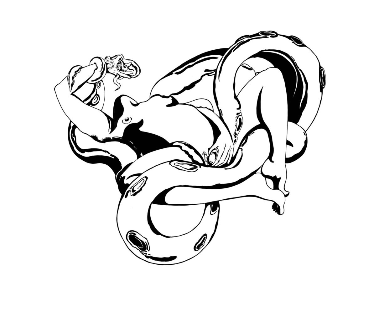 In this drawing I wanted to include unrestrained, feminine pleasure. Its essence is freedom, carefree, joy, being close to each other, awareness of your body and your desires…