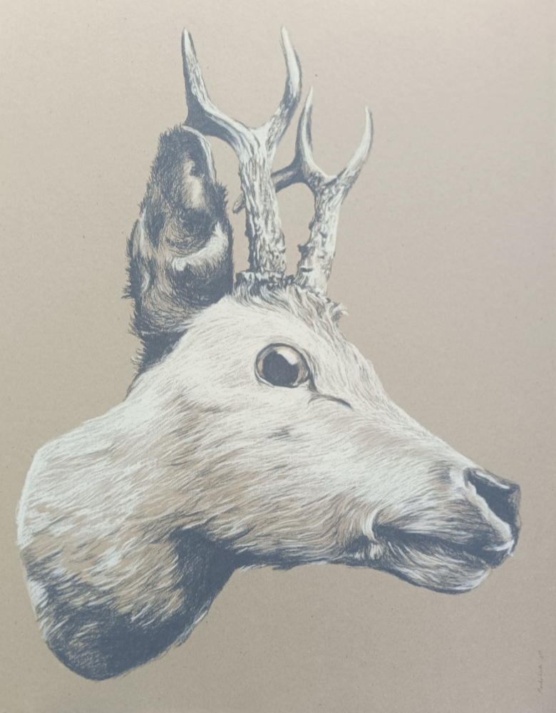 Zombi Bambi, 78×58,5cm, pastel on cardboard, 2025. Exhibition: Still life, Art Walk Gallery, 2025