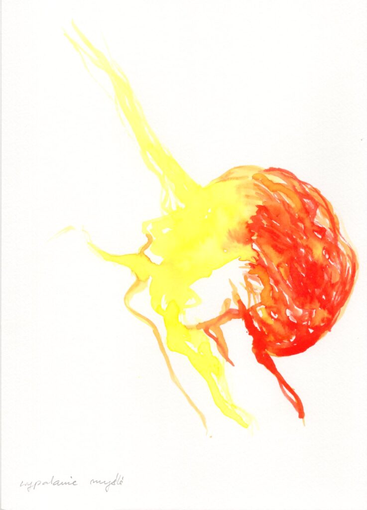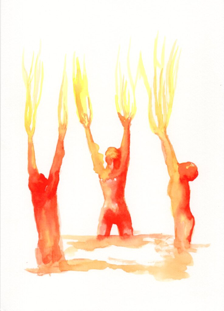 Wypalanie myśli, 29x21cm, akwarela na papierze, 2024 I Burning thoughts, watercolor on paper